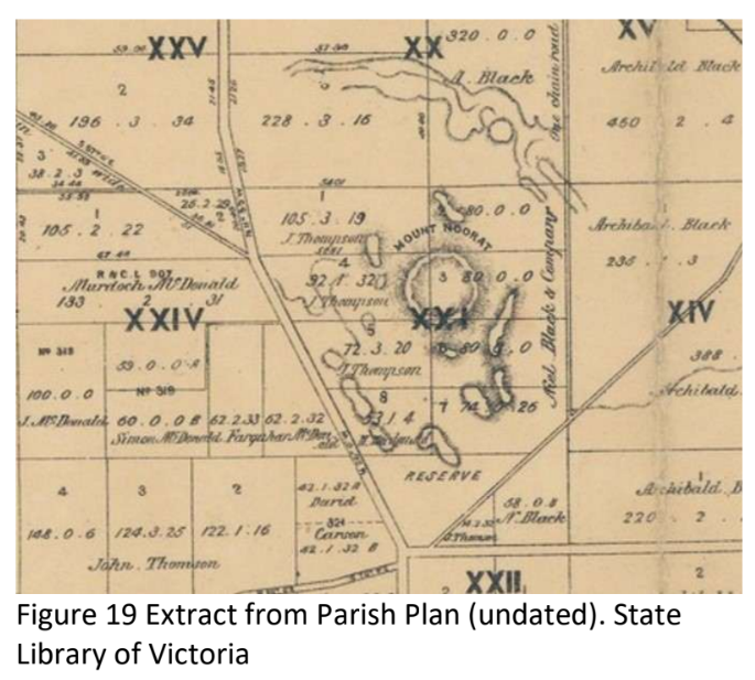The land was gradually opened for sale, and the Black family acquired much of it, culminating in Niel Black's purchase of Mount Noorat in 1863. Celebrations and bonfires marked royal visits and jubilees. Gravel quarrying began in the 1840s and remains a threat to the Mount’s landscape. Over time, the Blacks transitioned from sheep to cattle, then to dairy and other ventures. A hotel and a small settlement developed under the Mount’s southern slopes.