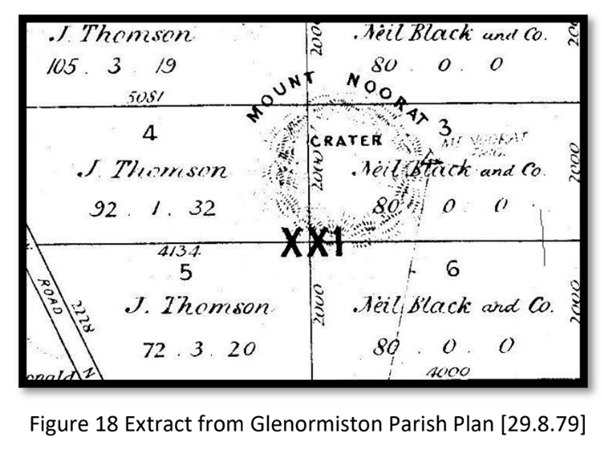 European settlement of Mount Noorat began in 1839 when Frederick Taylor established Strathdownie station for MacKillop and Smith. Niel Black purchased the rights in 1840, renaming it Glenormiston. The area saw ongoing disputes over boundaries, with Commissioner Foster Fyans resolving one major conflict in 1848. Surveyors and settlers developed the land, with sheep and later cattle farming. Mount Noorat was also the site of frequent bushfires, prompting the establishment of a dedicated fire lookout in 1880.