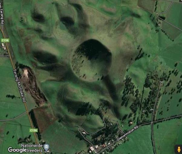 Located on the edge of the small township of Noorat in SW Victoria, Mount Noorat is a scoria cone with a complex volcanic history. It rises abruptly to a height of 310m above sea level - some 170m above the surrounding volcanic plains and came into being through a series of volcanic eruptions. Fire-fountaining, explosions and extensive lava flows combined to form a range of volcanic features including one of the most distinctive scoria cones and craters on the volcanic plains of Western Victoria in Southeastern Australia.
