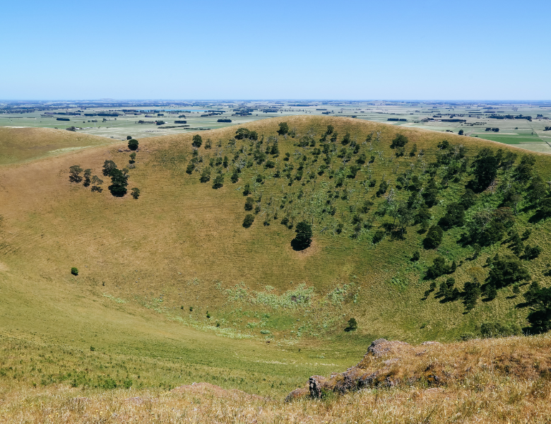 Mount Noorat means different things to different people. For many in the community, it is the peaceful ambience of Mount Noorat offering a place for quiet reflection that they value the most. For others, it is the uninterrupted views of the surrounding volcanic landscape and the chance to marvel at the geology of the Mount and surrounds.